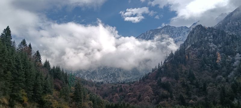 秋假第二天到毕棚沟,早上7点出发,12点离景区还有20km,直接堵死在路上。还好临时换了景点,路程很近,虽然很原始,但就当徒步了,还退一点钱,就当出来走走还是很不错的。
