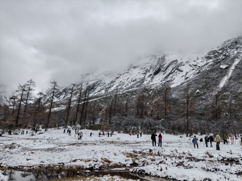 报名参加今日毕棚沟徒步一日活动,领队负责耐心,毕棚沟景区的彩林加雪景