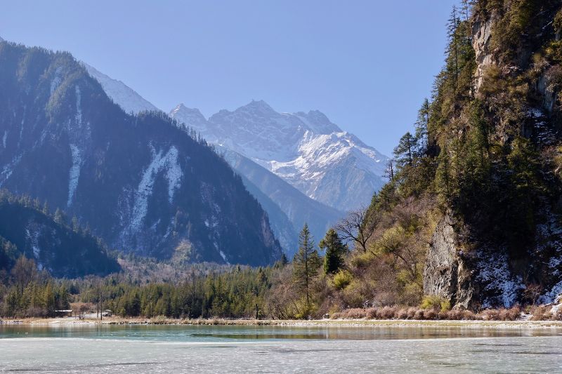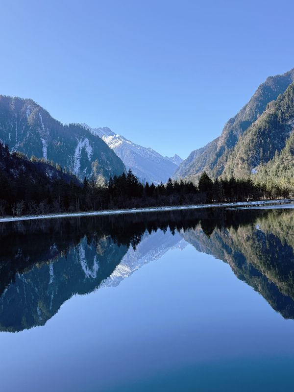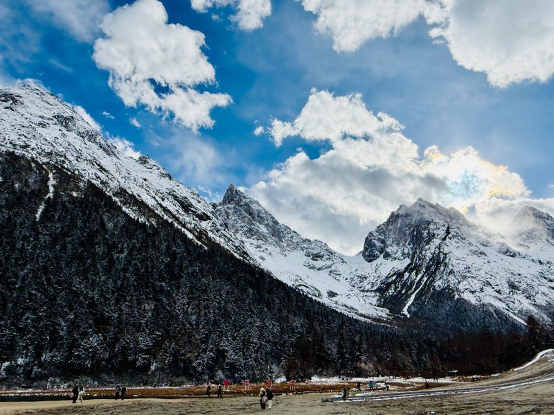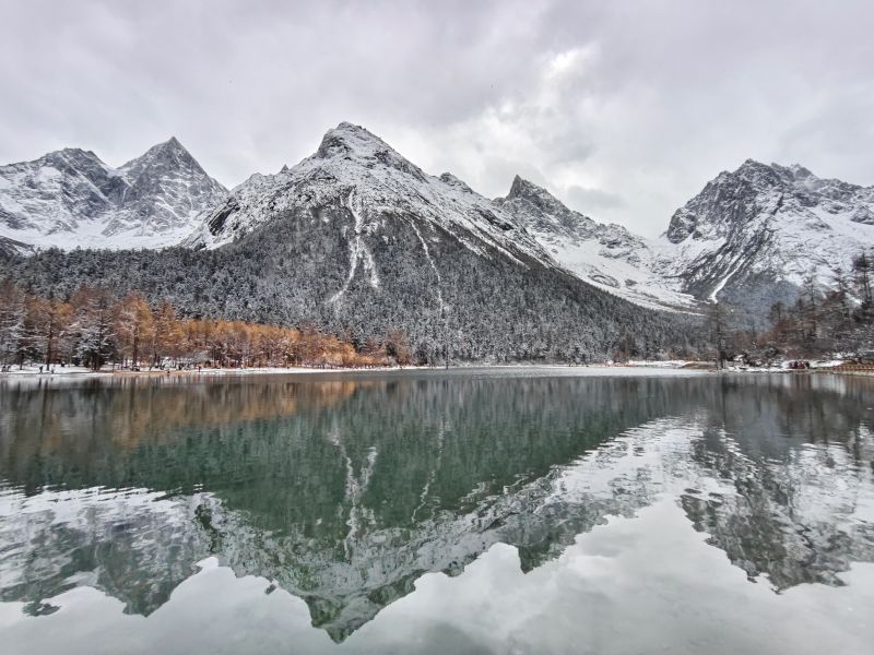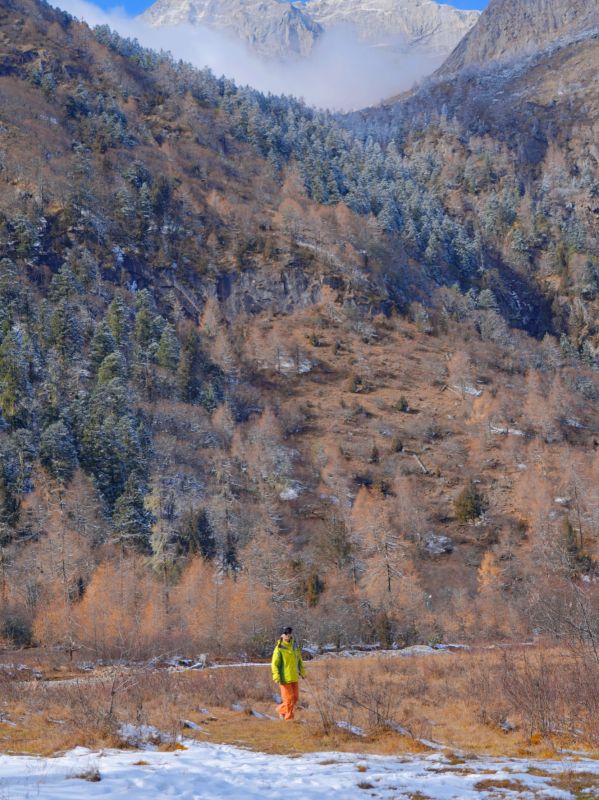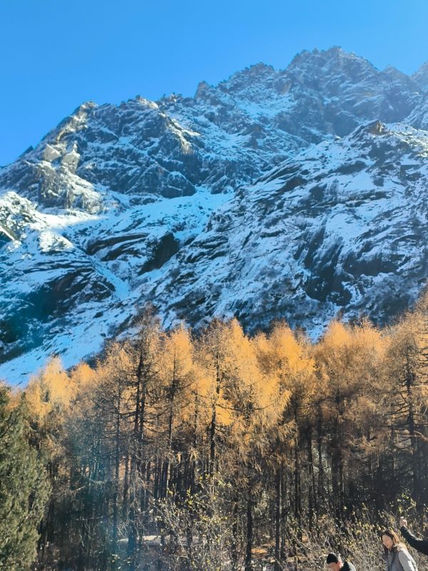 秋天真的太美了,那天去刚好有太阳,后面的雪山
