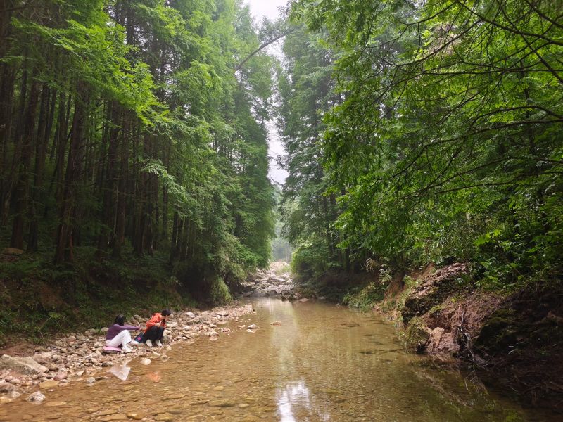 都是平缓的沙石和土路,即使下雨也不会滑。穿梭在林道里,一路沿着流水方向前行,悠然自得,如果走累了,河潭可以戏水哦。溪水潺潺、沟谷深邃,一个几乎完全没有被开发的原生态玩水地。一半凉意, 一半诗意