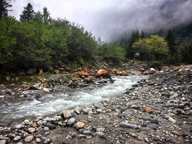 早上指定集合点出发,车上领队行程介绍,伙伴们相互认识,有才艺的可以露一手,一路欢声笑语度过,沿汶马高速一路前行,经毕棚沟、理小路约3.5-4小时车程,到达凉台沟红石滩。