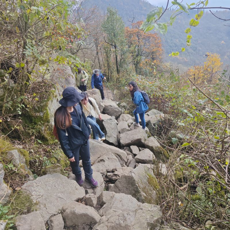 指定地点集合,车上领队组织大家相互认识。到达下车点,然后乘坐面包车转车到九峰山脚下。开始徒步,经过清凉寺、吊桥,而后向祖师殿进发,预计1H到达祖师殿(体能弱的1.5H,景区台阶路面),一路上景色非常漂亮的哟,到了祖师殿开始午餐,午餐后继续往上偶遇初雪、拍美照,天气好还可以看到壮阔的云海开始下山,预计14点半下山转乘面包车到大巴车处上车集合,16点集合返回成都。