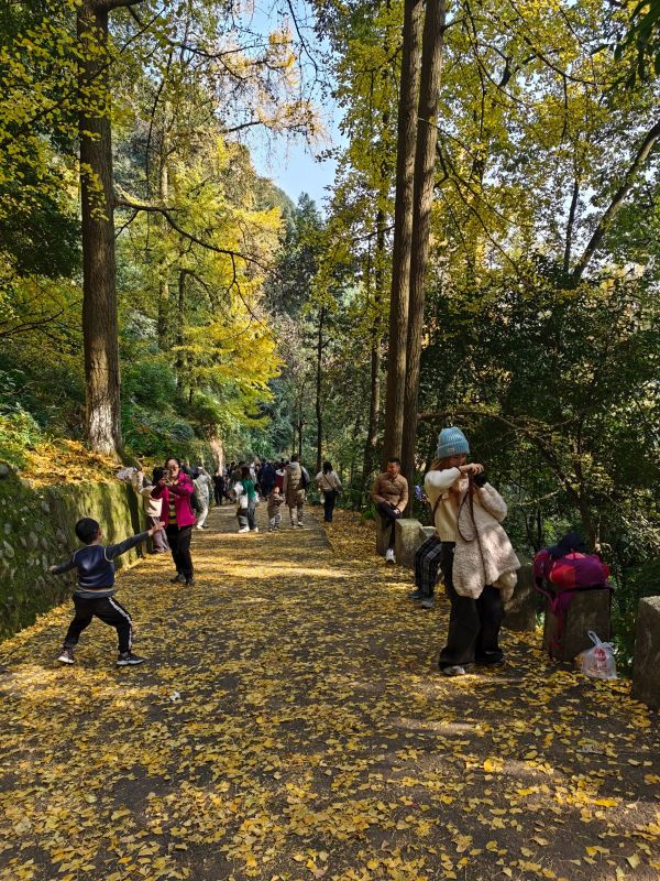 大部分时间比较轻松,就最后爬寺时候比较陡,需要一定体力,风景不错,去的有点晚,银杏落得差不多了,还有一条小吃街,卖啥的都有,厕所收费,而且特别脏