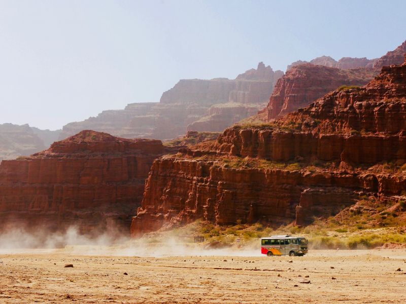 早上用完早餐后,08:00左右出发,行驶约3个半小时前往我们此次旅程的第一站--红山大峡谷。红山大峡谷又名安集海大峡谷,这里是一个没有被开发过的地方,第一眼看到时绝对是一种震撼感,感叹大自然的鬼斧神工,绚丽多彩的地貌,险峻的地形,磅礴的气势,顿感人类是那么的渺小。