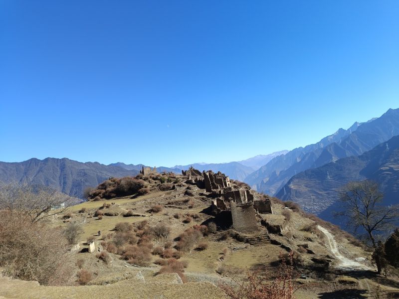 站在尔瓦寨荒弃的断垣上,极目远眺苍蓝色的川西天色下,多瑙河畔的盘山道蜿蜒而上,横贯整个视野。