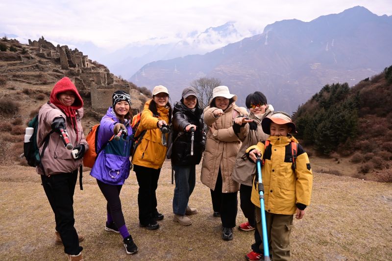 顺着视角辗转,从一片模糊的山影开始直到满山断壁游曳,铺展在木卡乡北坡那层层落落的阡陌,从那宏伟广阔的倒塌遗迹可以嗅觉到他的深远历史,以及曾经的云上羌族的特殊生活习性——这便是曾久历风霜的九子屯老寨。