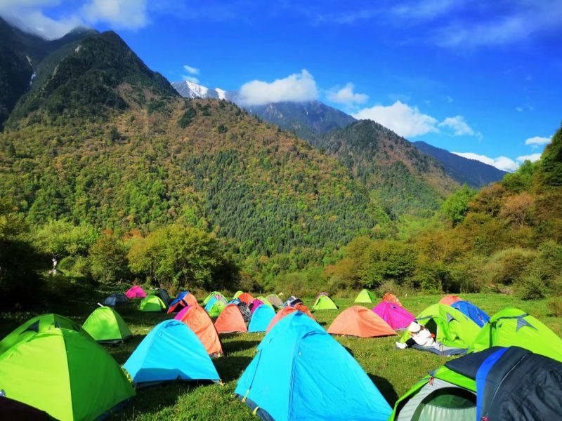 早上从成都出发,领队会带领小伙伴们相互认识并介绍行程以及注意事项。经成灌-都汶高速-薛孟路到孟屯河谷(绵虒服务区上厕所),吃午饭。餐后乘车前往孟屯河谷露营地山脚,徒步30分钟左右(单边1公里左右)左右到达高桥沟卡甲尔布露营基地,分配帐篷,搭建营地,之后跟随领队前往高桥沟瀑布游玩,晚上18:00晚餐,餐后篝火晚会,队友可AA烤鸡烤兔啤酒,尽情嗨皮。