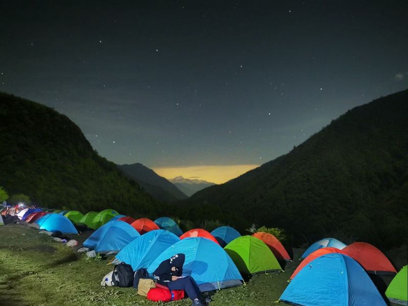 白天的长途跋涉,夜晚露营在孟屯河谷,听着虫鸣声,仰望漫天的繁星,会不由得感叹:良辰美景,应在此处....
