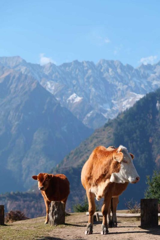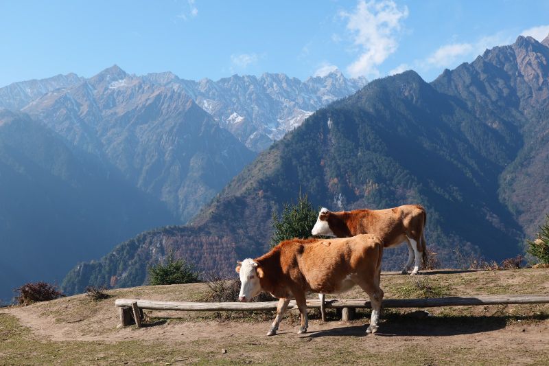 蓝天,白云,雪山,森林,牦牛,置身其中