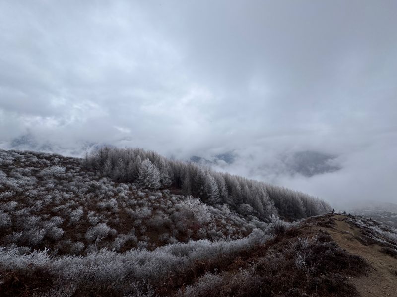 雾凇很漂亮,能看见远处的雪山,我们没有封顶中途也很漂亮,是个比较轻松的路线