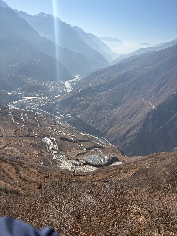 行程很轻松,徒步往返7公里,爬升也不多,可以看到羌寨碉楼、汶川全景,路上会穿梭果林,抬头还可以看到雪山。多谢大师兄的面,料汁绝了。