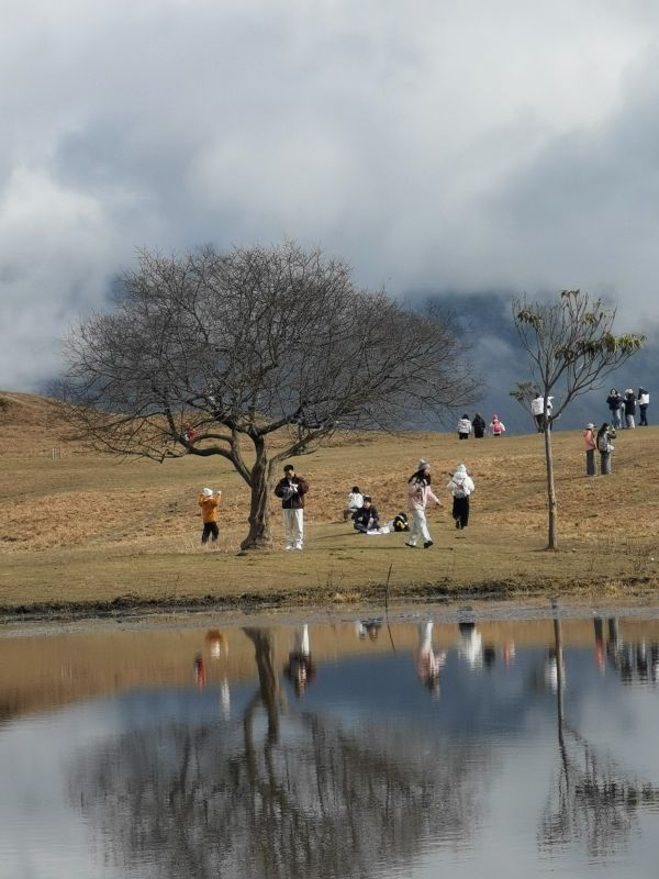 阴时烟雾缭绕,似炊烟在山野里缓缓升起,晴时自然拉近了我们与蓝天的距离,牛羊闲散地吃草,海子像一个微缩景观,拍倒影、拍草地,可以尽情玩耍。