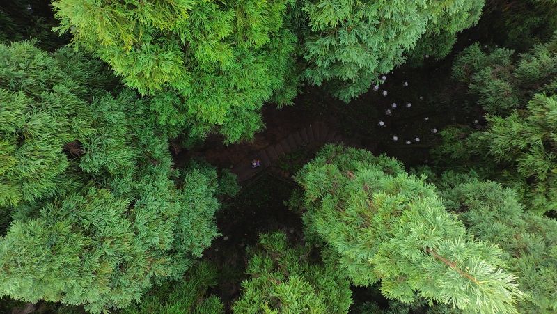 森林不是太大 进森林前有段坡比较陡 森林里有灵芝种植基地 可以瞅瞅 小朋友可以没问题
