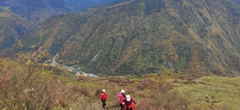 彩林最佳观赏季已抵达。周末发往川西的团太多了,路上有点堵车,11点到卓西牧场徒步起点,沿着山间小道一路爬升,开始段坡度大但是很快进入黄色松林间,越往上走视野越开阔,很快看到满山彩林。到达草甸有牛马,此处风大需要冲锋衣外套。回程走大路机耕道不费腿,最后的最后是最精华路段,色彩浓郁得太美了。不虚此行。慢慢领队认真负责,合理安排。大家顺利完成了此次行程。