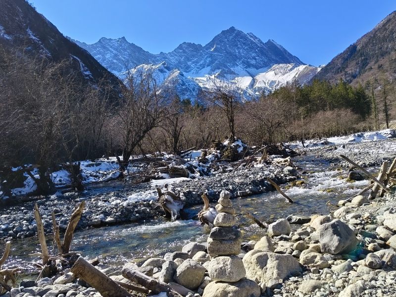 景色不错,大二普的牦牛肉串好吃,还拍到了一只可爱亲人的白色猫猫,小河结冰了,在上面滑了一会儿。红石滩可以看到雪山,往下走到红石滩里面,拍照很出片,看到同行的人拍的照片真的太好看了。小召领队很好,详细讲解游玩时间,注意事项,回到成都后该给我们分享了适合看流星雨的地方,还推荐了王岗山,牛背山几个看雪山的地方。有点心动,下个月想去试试