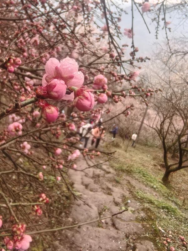青梅古道爬起来不累,山上梅花错落有致,开得非常漂亮,今天天气有点不给力,但是领队榴莲给大家拍了很多美照,算是非常完美的一次出游了