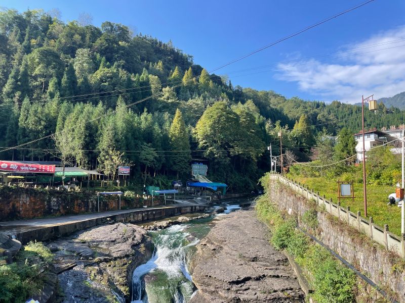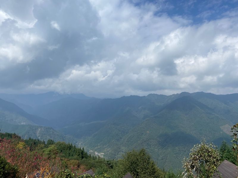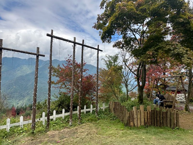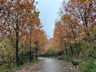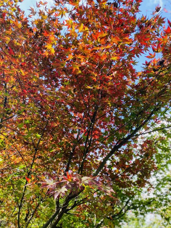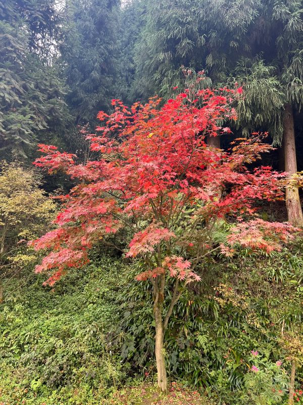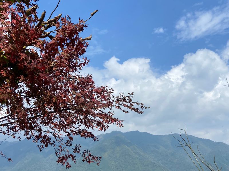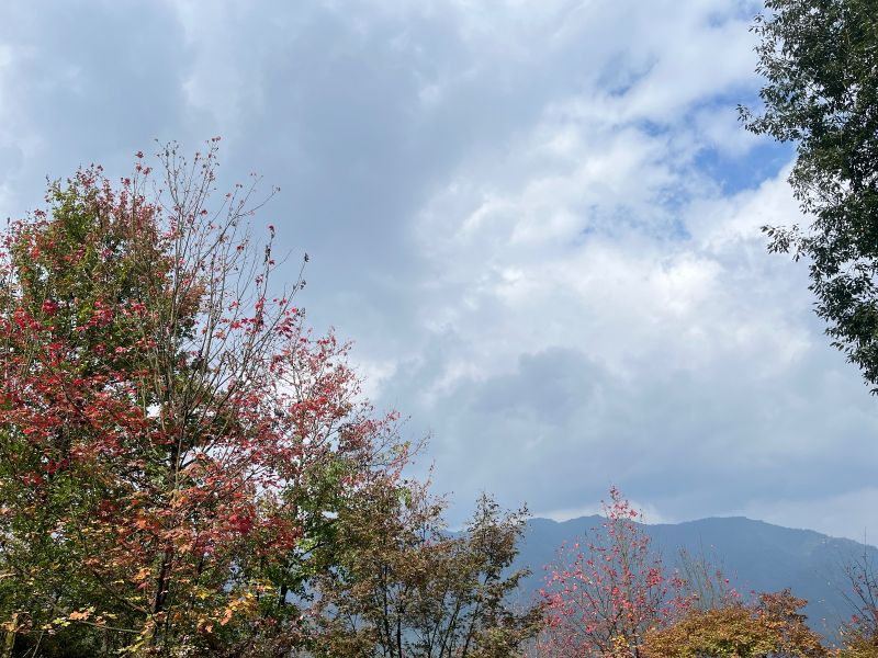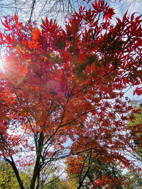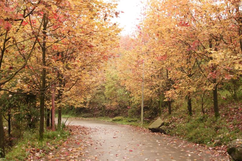 司机师傅把车停在山脚下,我们沿着一条泥巴路爬呀爬爬到了景区门口,进去以后的路都是铺了水泥的,景区不大,10月21号去的时候红枫叶都掉的差不多了,只有山顶上的树还一些叶子。阳光很好,空气很清新,适合慢慢悠悠的拍照、闲逛,景区里面有卖吃的,价格还实惠,不用带太多吃的去。回来的时候是沿着水泥路下山,步行40多分钟就能到山脚,一路上都有车经过,不适合拍照了。