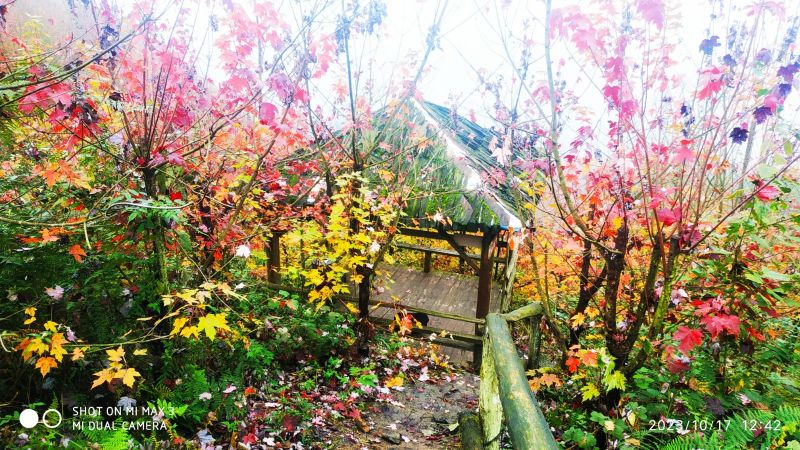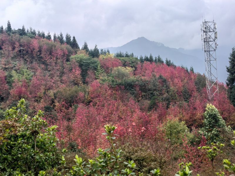 第一次和Lu的队友们踏着泥泞的小路登上了艳丽五彩的红枫岭!这里的红叶