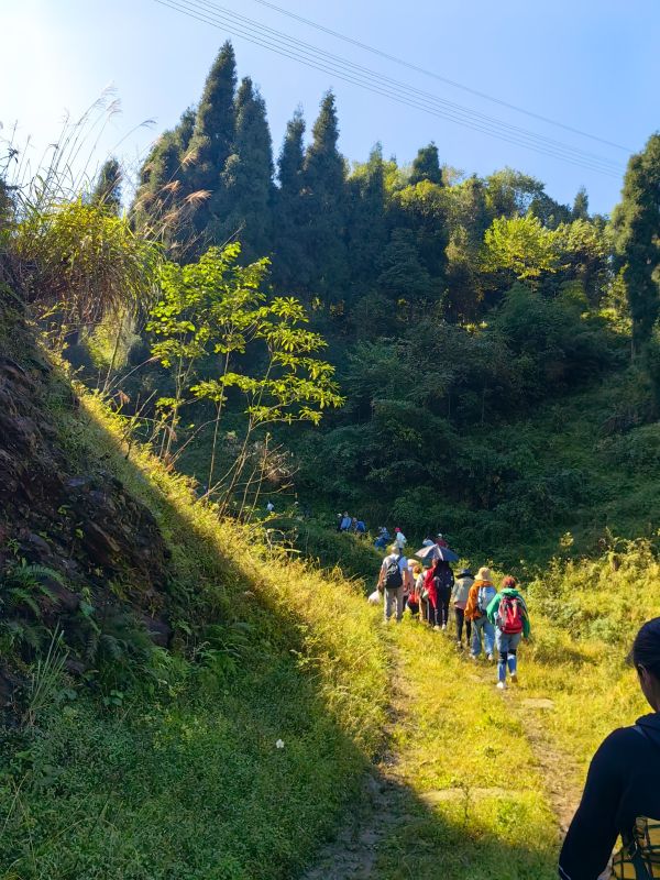 行程比较轻松,走了一段公路到门口,是个景区,还比较大。红叶还是比较多的,领队榴莲很风趣