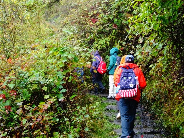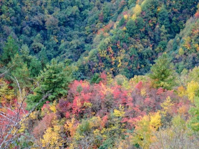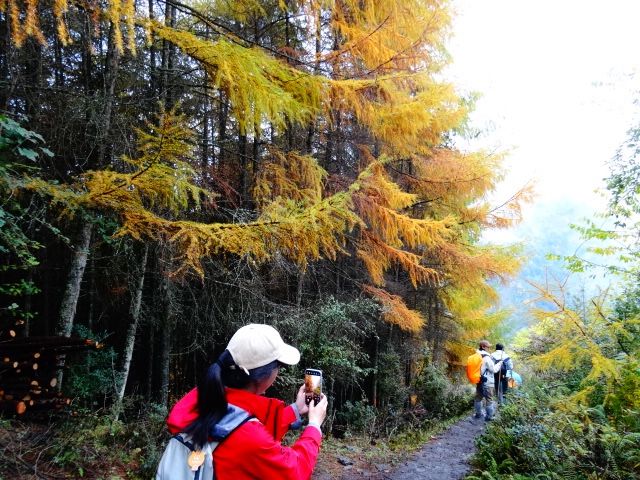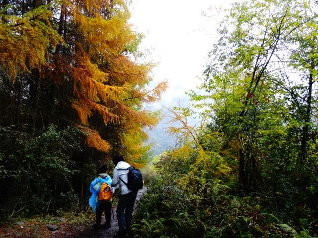 秋色不错 车里很多娃娃但是都很乖 一路生气勃勃 下山路有点湿滑