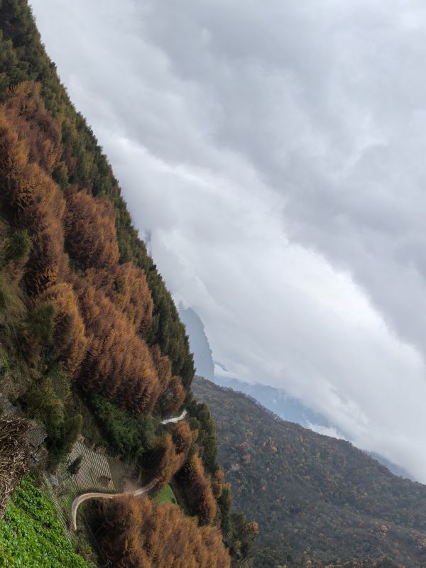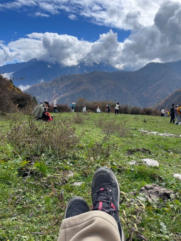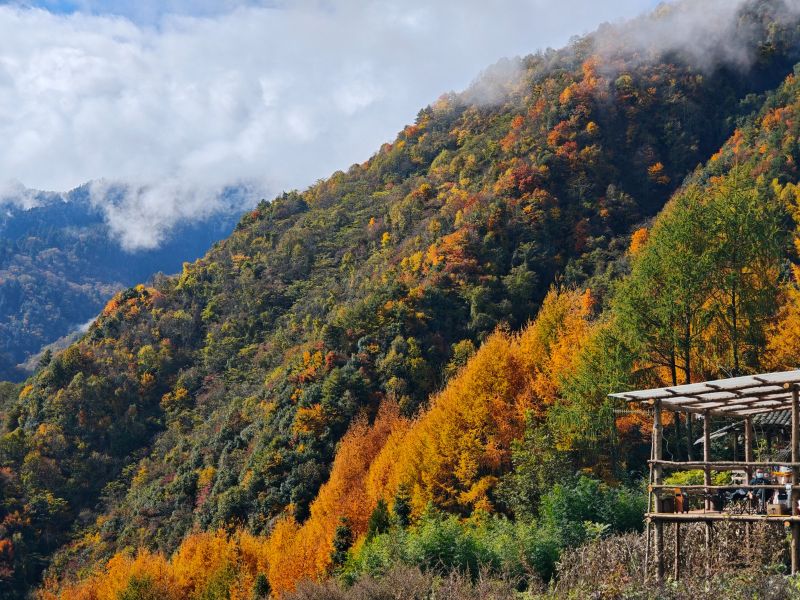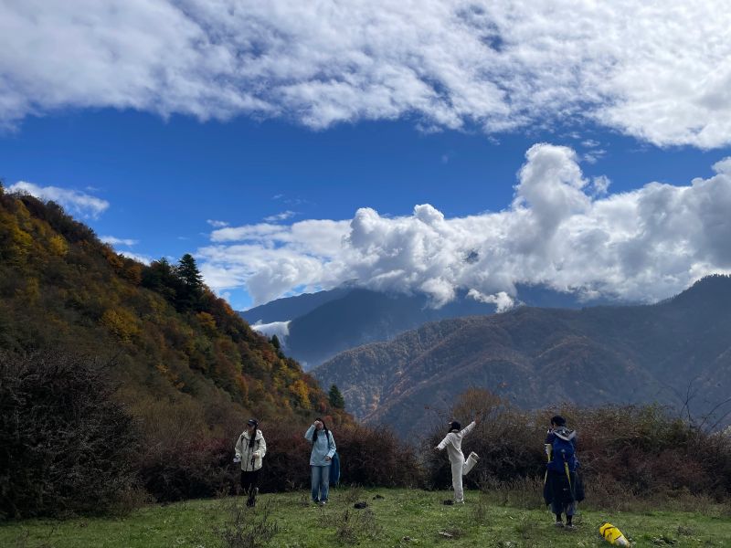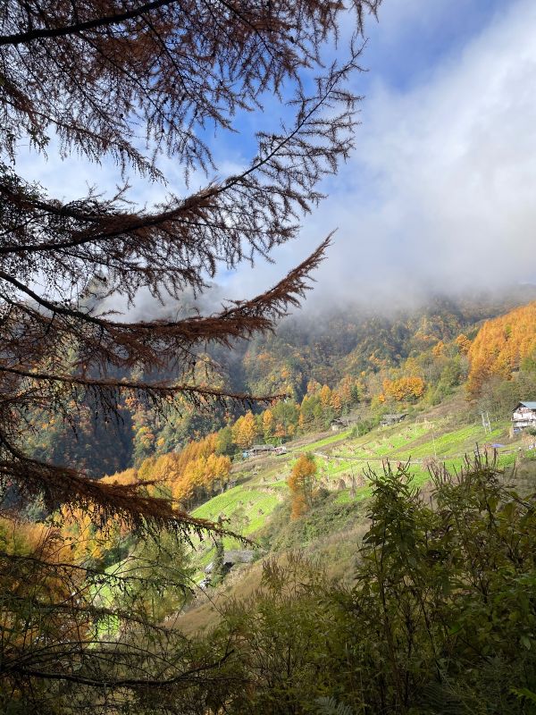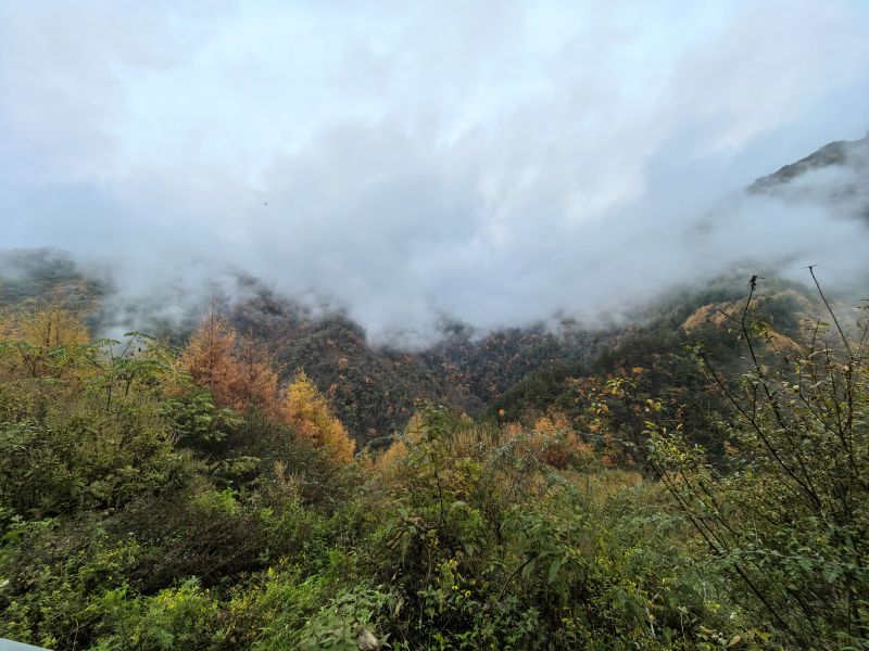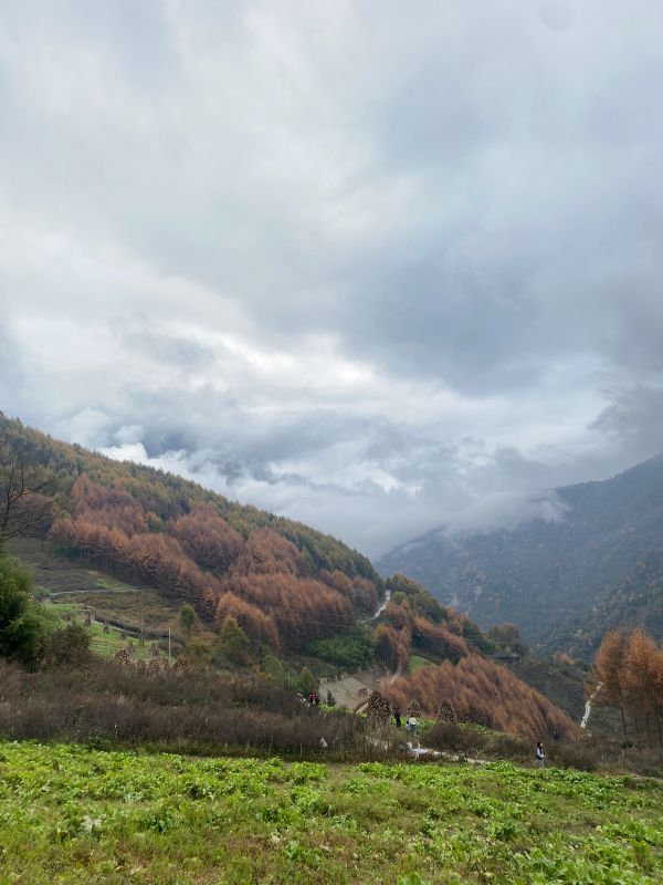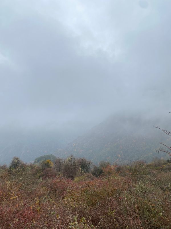 赶着秋末来看彩林,刚到的时候山脚下都是雾,气温还是有点低,爬一爬身体暖和一些,整体难度不高,刚开始到一号草甸爬升多一些,后面到2号3号就不高了,山上一直有雾,一会雾散开一点山上的彩林看起来明显一些,感觉最美的就是3号草甸了,视野开阔,有很多牛在吃草,关键就是相比于前面两个草甸,这里干净很多!前面一路上的垃圾真的很影响观感,希望收了垃圾费之后可以定期维护一下这里的环境,希望后来来玩的人不要在造更多的垃圾了。 山下的烤红薯烤土豆烤豆干烤牛肉都很好吃,牛肉汤本来想着下山来吃结果老板卖完了,山下还有很多土特产,卖的都不贵,一路上都没什么厕所,山下都是旱厕,上一次让人真的影响深刻… 火星领队很专业,拍照也很好看,一路上都很照顾队员,人也蛮幽默的,希望下次有缘再见~