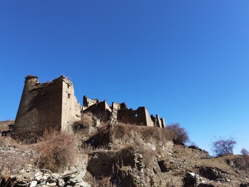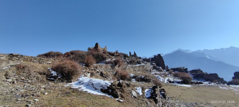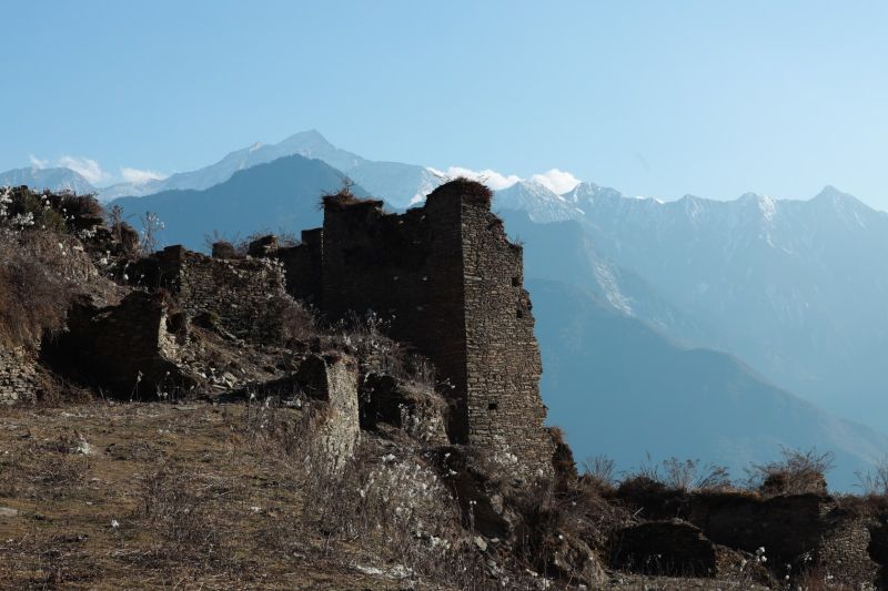 初冬微冷,半山腰上的古老建筑,温暖太阳斜着撒下来,很棒。