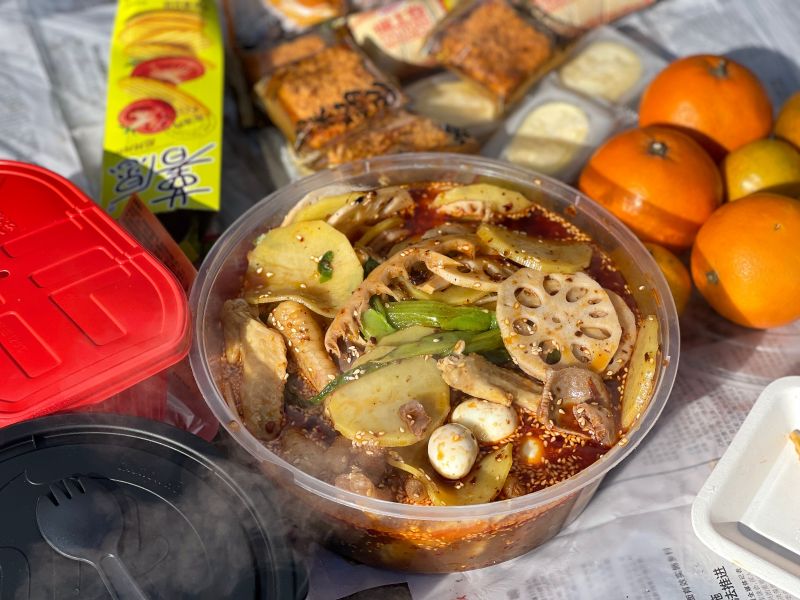 天气给力,中午在山顶牧场,蓝天白云下吃着自己带的钵钵鸡和自热米饭,轻松愉快。领对阿布也很不错