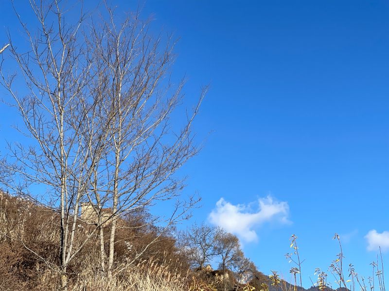 在城市里被蒙蔽的天空笼罩久了,看见真实的蓝天已经不相信了。九子屯的蓝天就是这样蓝的不真实。此行运气超好,大晴天,大太阳,还遇上了超好的领队爱菲。