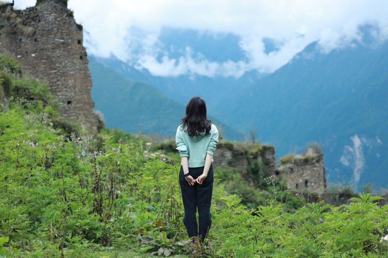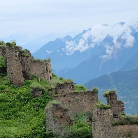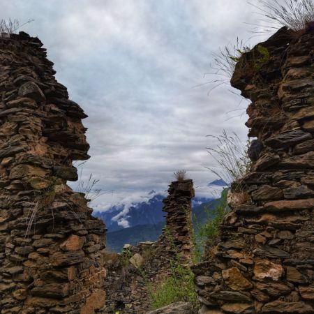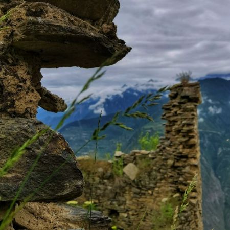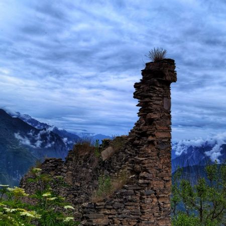 漫步在雪山下断壁残垣的遗迹上…… 抚摸着残砖仿佛在听他述说着深远的历史……… 中国版的马丘比丘