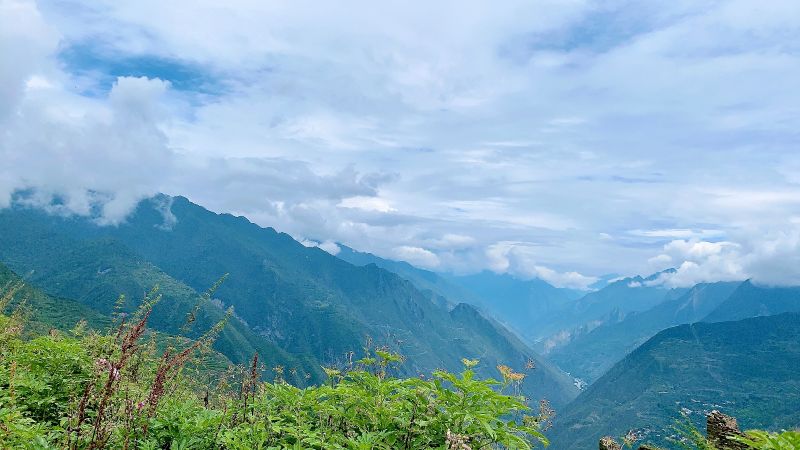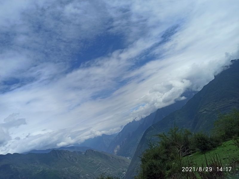 蓝天、浮云、峡谷、