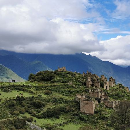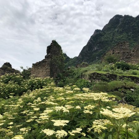 蓝天白云下,牛,马安静的吃着草,废弃古羌村只剩残垣断壁,却是越发的原始古朴。值得去,不去怎会发现存在的美。 继续对领队命言进行表扬,负责周到专业,并不厌其烦的为大家拍照留影。