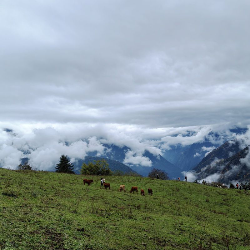 首先感谢领队洪源把自己的登山杖借给我,简直是救命稻草,领队全程也很负责任。 其次团队小伙伴很友善,互相鼓励。 最后,牧场也不错,彩林已初现,能出片。