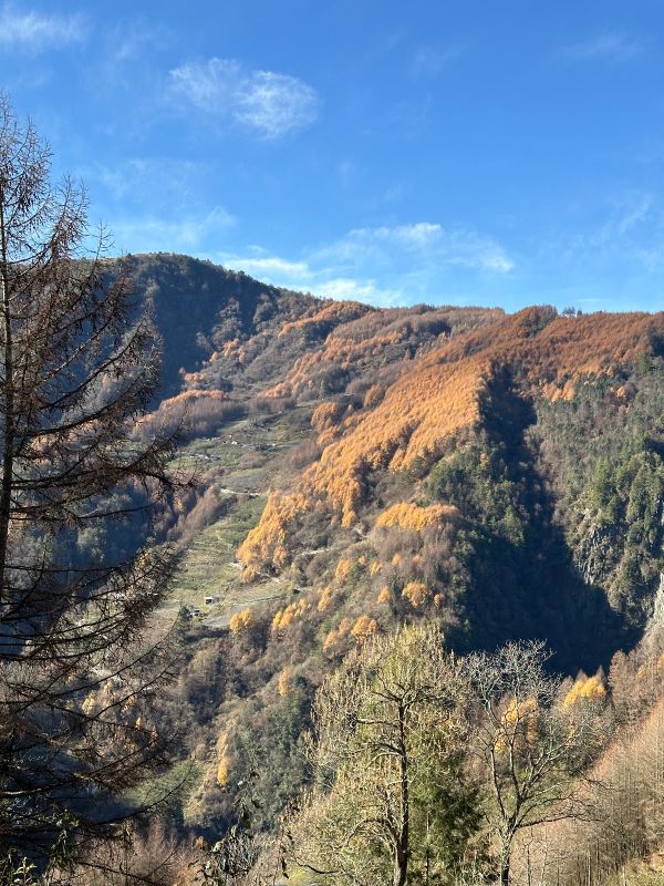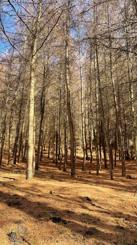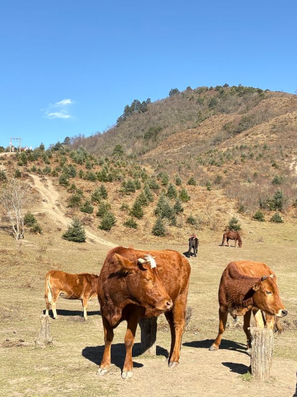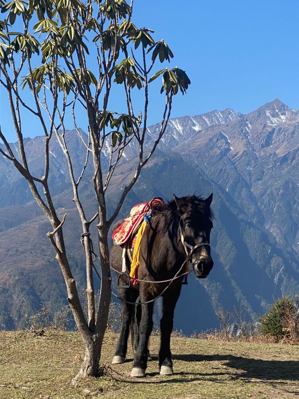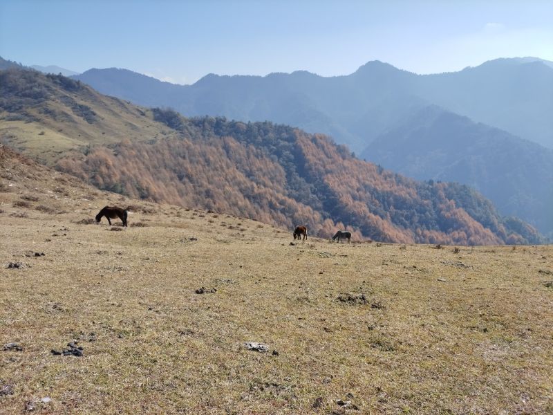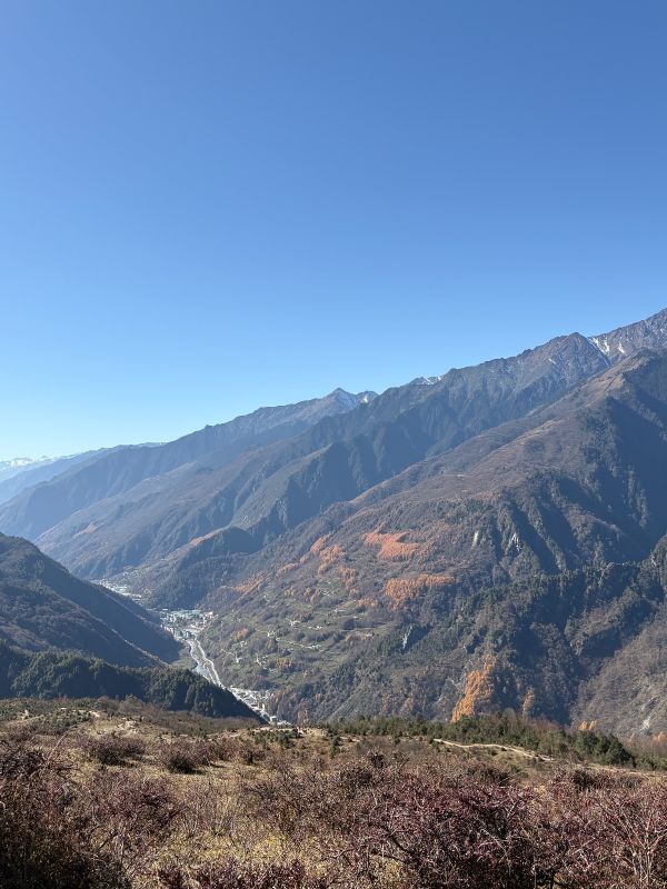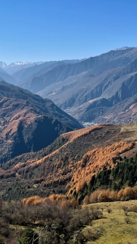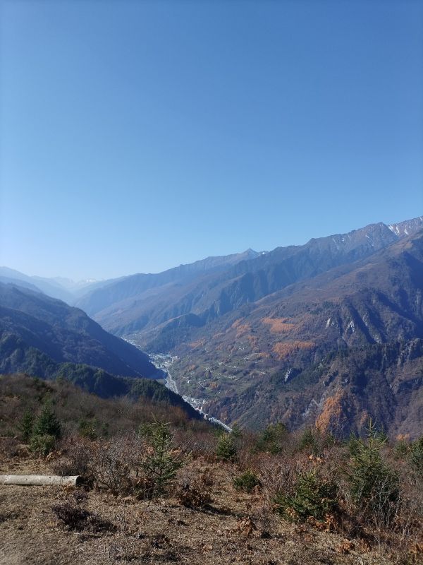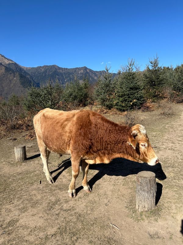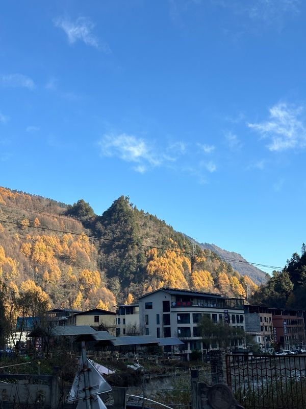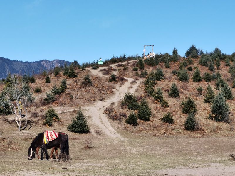 风景很美,就是想象中的样子,蓝天,彩林,雪山,还有牛马,都是那么的和谐共处。