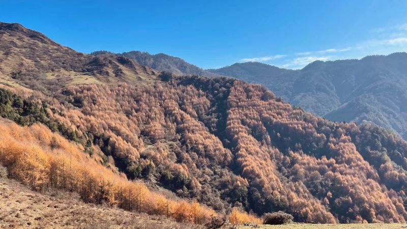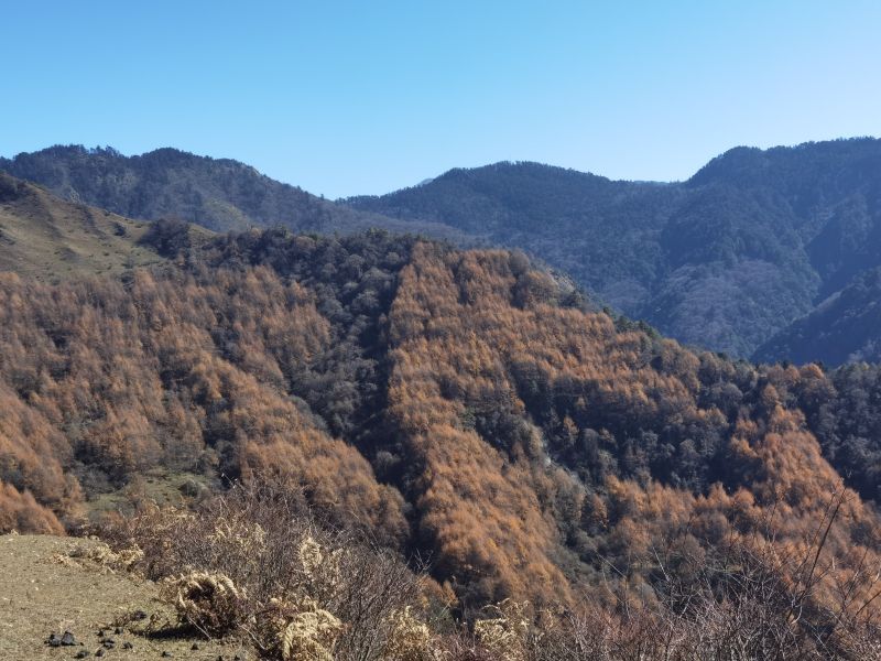 天气不错的情况下云中岭秋色还是不错的,看得见雪山,有大片的高山草甸,彩林也还有一丢丢。