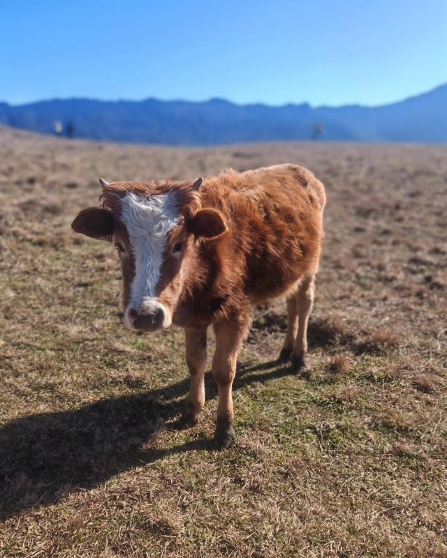 涉过海子,越过山坡,牧场芳草绿萋萋,风柔软得像绸缎一样拂过面庞,细雨微凉体感舒适,这里,牧歌如风般述说。或是食天地灵气,这片高山草地上的牛羊健硕,散漫地游走在草甸,啃食嫩芽儿。也或是少有人扰,生性温顺的它们,面对镜头毫无怯意,满眼的温柔与好奇。