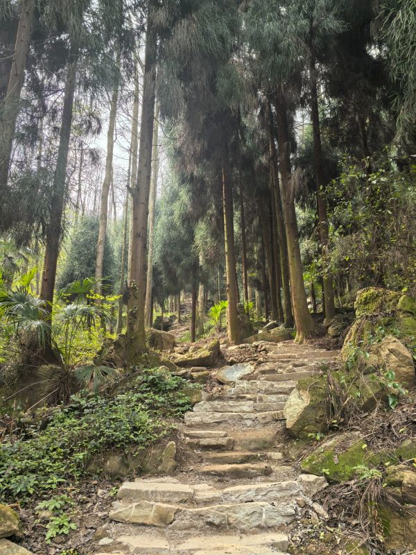 全程路况较好,刚开始是公路,盘山公路。接着从仙居山入口开始,石梯上山,有点陡峭。中间段也是石梯,没有泥巴路。后半段也是石梯和公路段,有些地方还可以挖野菜,主要是折耳根。最后从大王庙穿庙而出到达停车场。“云樱古道” 部分,路比较陡峭,大概有70度的坡度,急上急下。