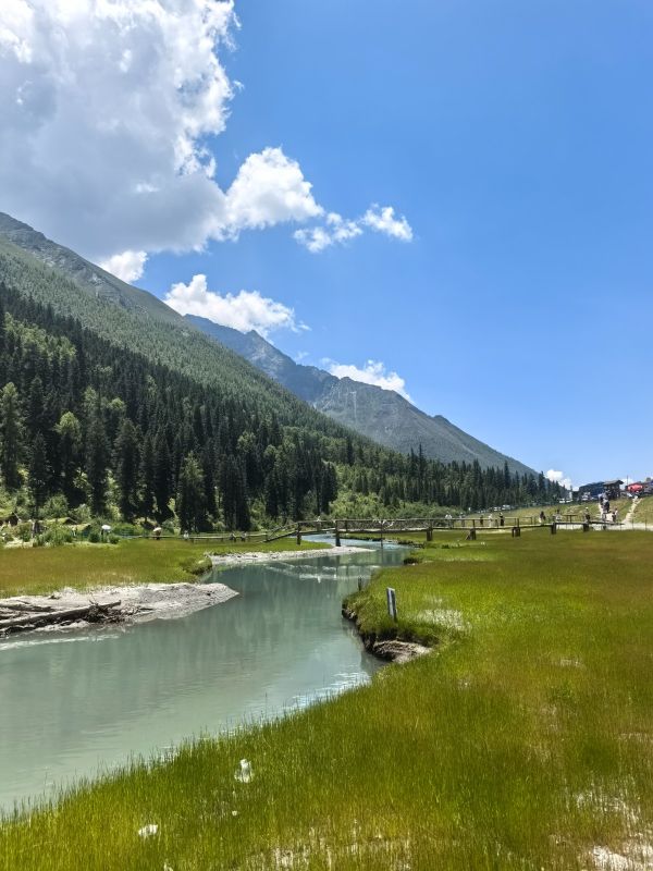 这是一片高原秘境河谷,雪山森林环抱,谷地平缓开阔,滩涂纵横交错,牛马在其中吃草放牧,一幅雪域田园牧歌画卷!不仅有海子和雪山,沿途还有各种的风景,如瀑布、溪流、森林、草甸、牧场等,这里是一个适合徒步、游玩,周边还有很多森林,七八月间也可以进入山林采摘也蘑菇。在游玩2-3小时,16点半左右集合上车,返程!