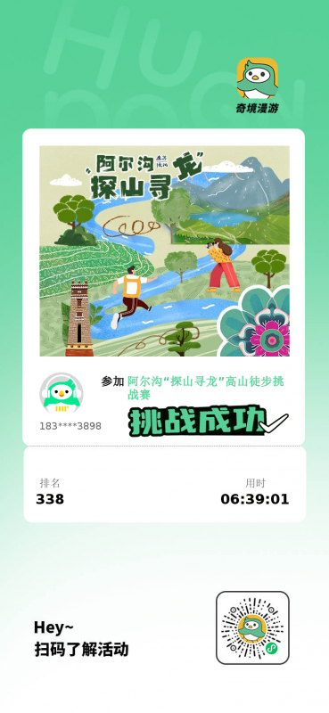 阿尔沟“探山寻龙”高山徒步挑战赛,共设3个打卡点位,分别为起点【三角坝许愿池】、中途点【祈福树】、终点【龙池】,挑战者须完成3处打卡点任务,并成功登顶龙池,按要求完成挑战将获得阿尔沟限定徒步奖牌1枚~(详情参见报名帖预定须知)