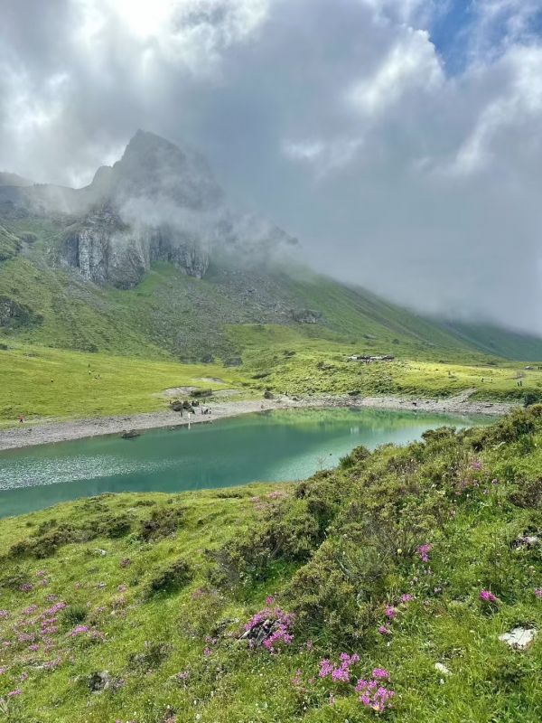 早上7:00起床出发前往长海子(全程机耕道往返徒步10公里爬升400米,可选皮卡上山费用自理),这里风景绝佳,一路花开为伴,有比九顶山更密集的野花群落,20+种高山花卉同期盛放享受顶级花海体验,沿途还有罕见的全缘叶绿绒蒿(保护植物禁止损害)。接近海子时,草甸上遍布圆滚滚的旱獭洞,呆萌的土拨鼠常直立张望,投喂食物它们会扭着屁股跑来(建议保持距离)。 终点是一汪翡翠色的冰蚀湖,湖水透明度极高,倒映着周围刀削般的山峰。长海子非传统景区,游客稀少,可独享雪山花海同框的震撼视角。中午12:30左右返回酒店用餐,餐后小憩片刻乘车返回成都。预计晚上20:00左右到达成都散团。