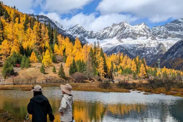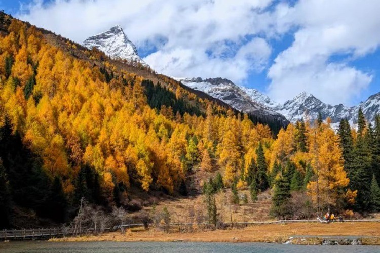 雪山与彩林交相辉映