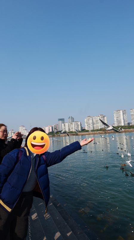 今天的行程轻松惬意,圣水寺的素斋很好吃,下次三江半岛的红嘴鸥在身边飞来飞去抢着吃大家喂的面包。领队很负责,期待下次再聚。