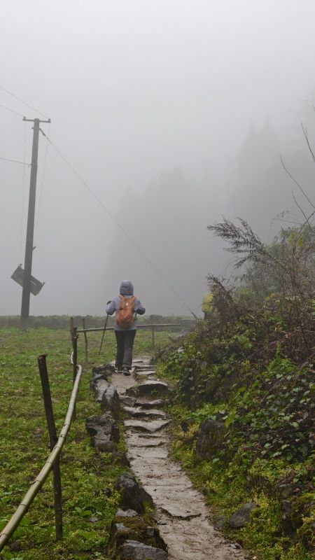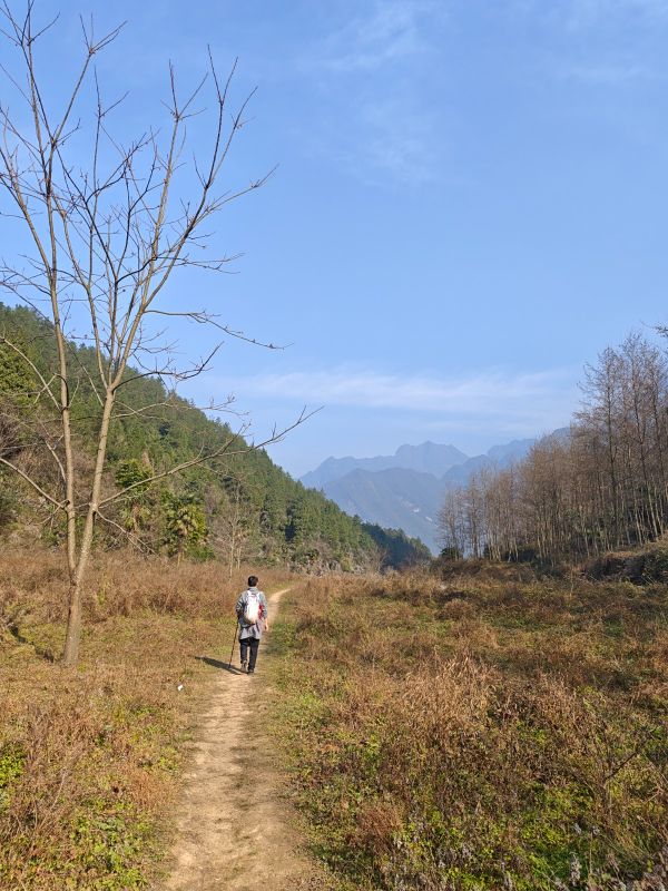 从上面的民宿出发,先走一小段乡间公路,穿过山里人家,便正式开始徒步。
