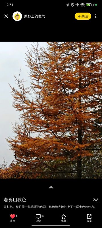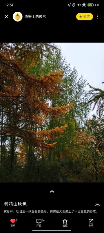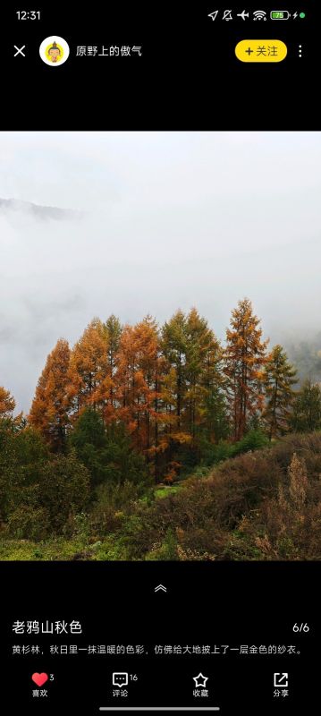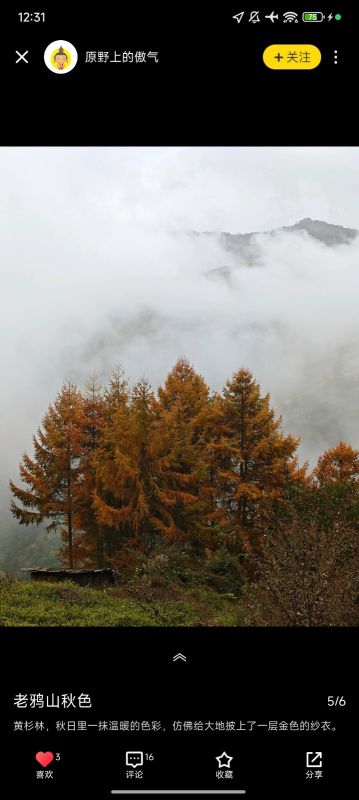 赶着秋末来看彩林,刚到的时候山脚下都是雾,气温还是有点低,爬一爬身体暖和一些,整体难度不高,刚开始到一号草甸爬升多一些,后面到2号3号就不高了,山上一直有雾,一会雾散开一点山上的彩林看起来明显一些,感觉最美的就是3号草甸了,视野开阔,有很多牛在吃草,关键就是相比于前面两个草甸,这里干净很多!前面一路上的垃圾真的很影响观感,希望收了垃圾费之后可以定期维护一下这里的环境,希望后来来玩的人不要在造更多的垃圾了。 山下的烤红薯烤土豆烤豆干烤牛肉都很好吃,牛肉汤本来想着下山来吃结果老板卖完了,山下还有很多土特产,卖的都不贵,一路上都没什么厕所,山下都是旱厕,上一次让人真的影响深刻… 火星领队很专业,拍照也很好看,一路上都很照顾队员,人也蛮幽默的,希望下次有缘再见~