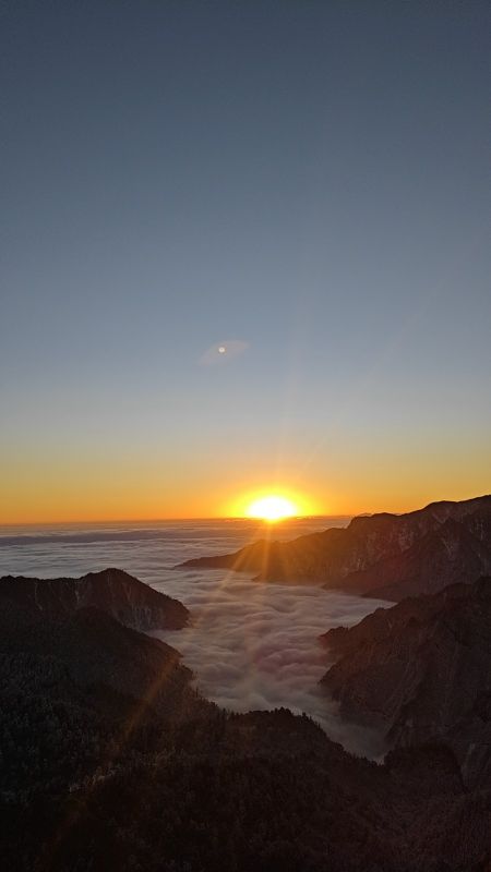 华尖山与牛背山海拔相差无几,且距离贡嘎雪山更近,这里的日出和牛背山上见着的一样的壮观。