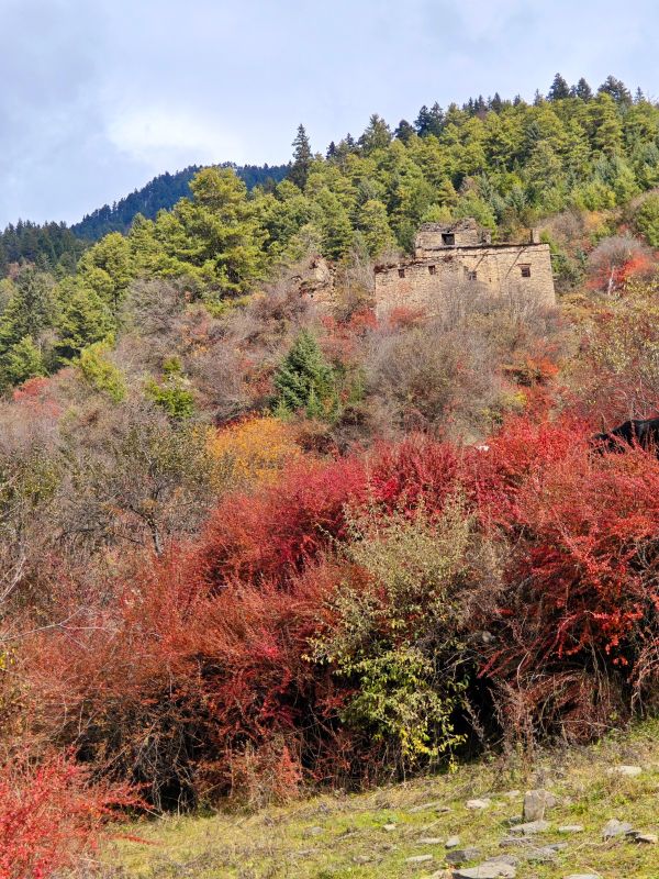 它就是丫巴寨,原汁原味的嘉绒藏族村寨。虽然已经废弃多年,但是集雪山,草甸,彩林于一身,站在寨子面前,还可以眺望九龙池等地的4000-5000米的高山。