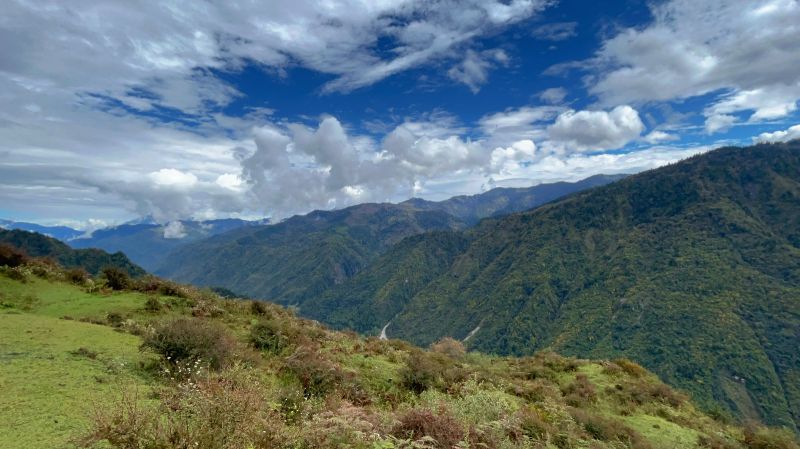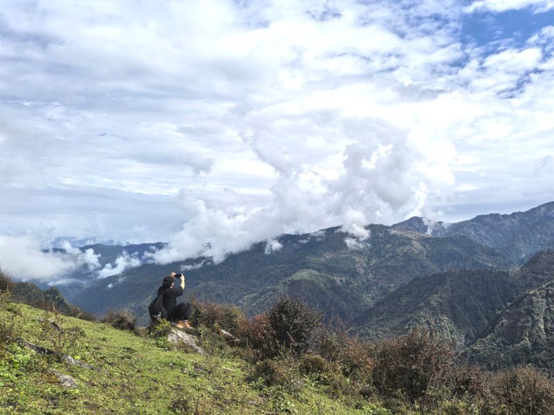 没有人群攒动,没有高楼大厦,在眼前只是连绵的苍山翠谷,还有天空上变幻莫测的白云,脚下的草地松软喜人。