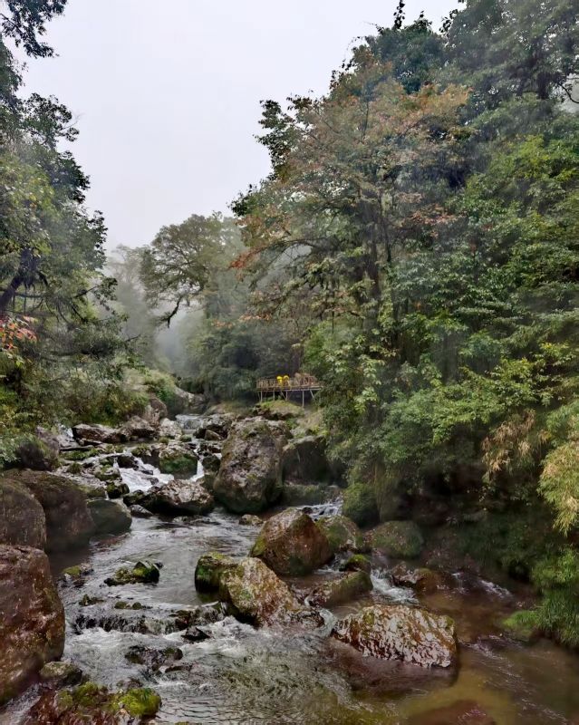 从成都坐车2.5小时就能直达龙苍沟,一进景区就被清冽的草木香裹住,瞬间逃离城市烦躁。徒步栈道平缓好走,毫无压力。沿途溪瀑不断,珙桐溪谷里的溪水清澈见底,瀑布宽大连绵的水帘从崖顶冲下,水雾扑面而来,拍照氛围感拉满,路上还偶遇了苔藓覆盖的古树,阳光透过枝叶洒下丁达尔光柱,宛如绿野仙踪。集齐打卡点后领到了纪念奖牌,仪式感十足。不过有部分路段青苔湿滑,需穿防滑鞋。总之整体走下来体验还是很不错的。