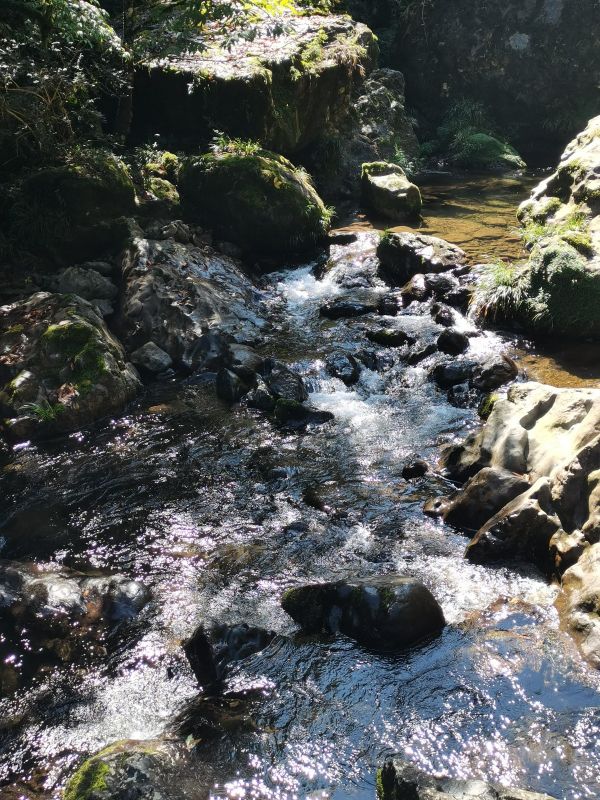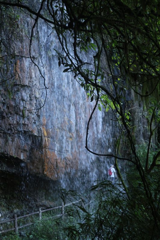 进入景区后,沿着溪涧走,山风徐来,空气中飘散着一丝幽幽香气,淡淡的,不知道是什么花, 道路边时而是小桥流水,时而流泉飞瀑,走走停停,听山谷鸟鸣,见树苔青翠。想到负氧离子,这里的指数一定好!到!爆!表!