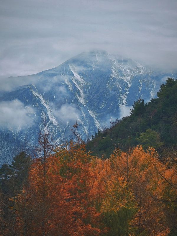 秋季,这里也是一处观彩林的好地方,云雾缭绕,远山时隐时现,山间间插彩林,一种色彩泼染的感觉。在城市生活久了,这样的地方总能使人感到舒适。
