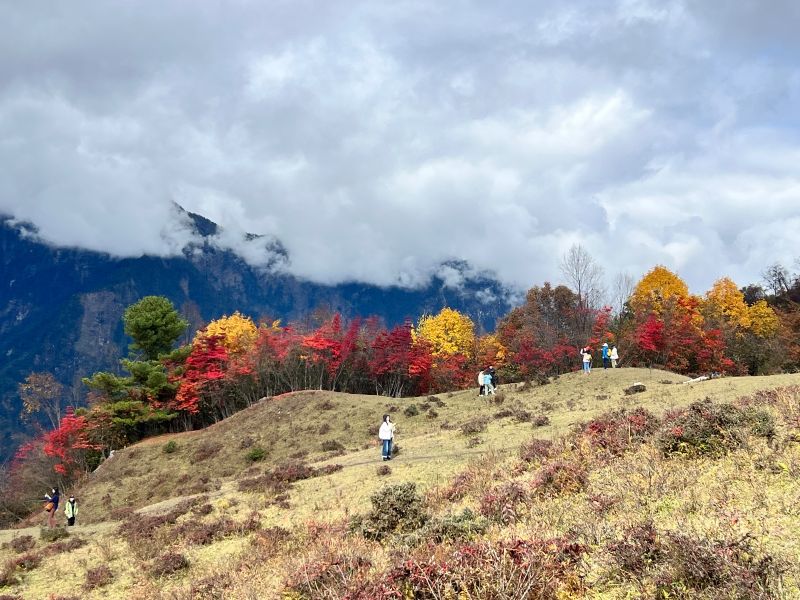 早上集合点准时出发,车上领队讲解行程安排及注意事项,发放小奖品,一路欢歌笑语,预计10:40到达下车点,乘坐当地中转车前往徒步起点(中转费30元/人自理,车上另收),简单活动身体后,跟随领队开始徒步,一路拾阶而上,穿梭在秋的油画里,欣赏色彩的丰富,远看云雾缭绕;中午在坐在金黄的高山草甸上,就着淡淡的牛屎清香,享用自带豪华路餐,在蓝天下、白云里继续放飞自己,拍摄美照,下午适时返回乘坐中转车下山,预计下午16:30左右集合返程,大家相互分享照片,结束愉快的一天。
